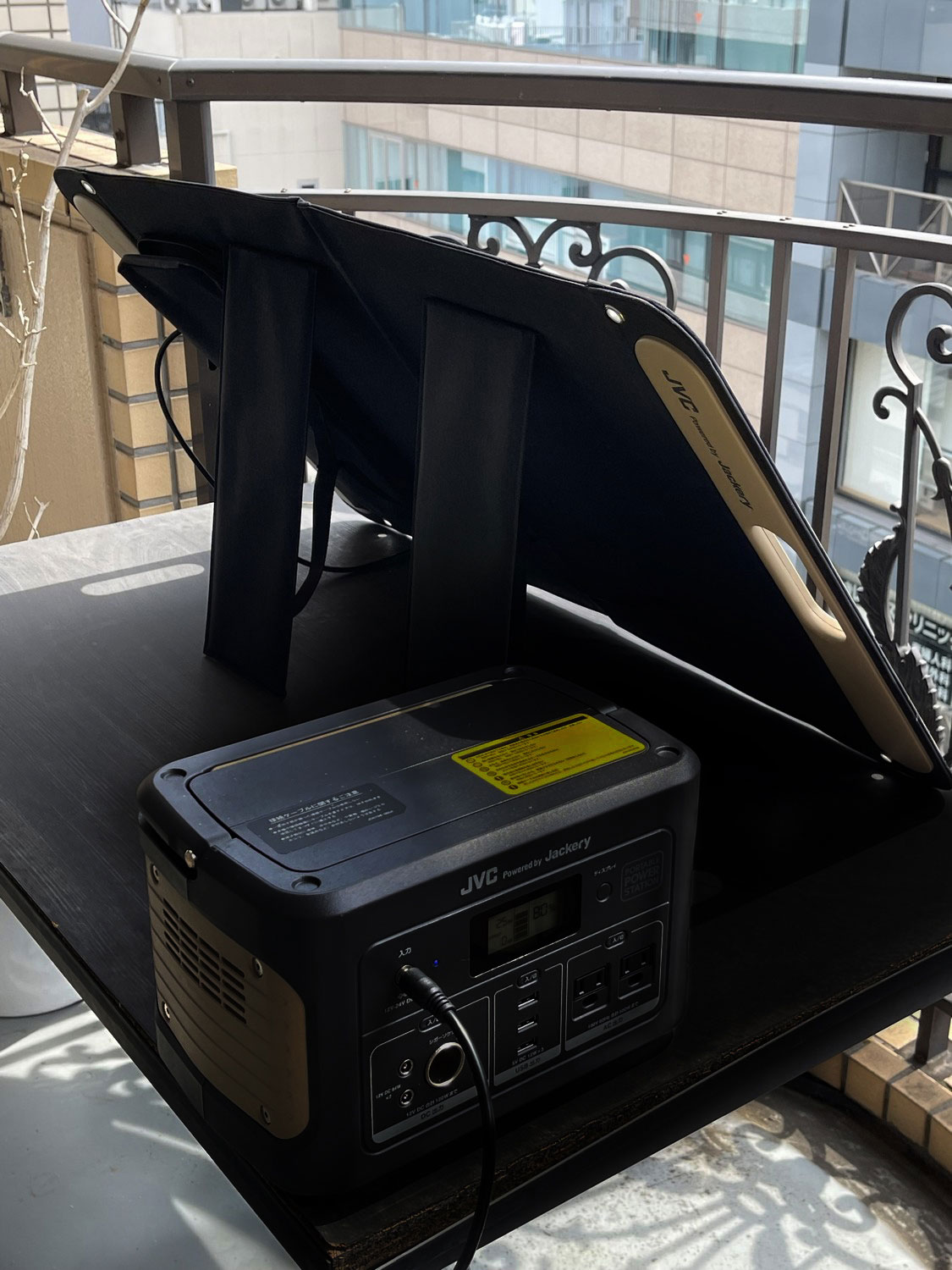 日頃から直射日光になるべく当たらないように、ポータブルソーラーパネルの裏側に置いたり、少し離れた日陰に置いたりしていたのですが、正しい使い方だったようです。日陰が見つからないようなときには、別売のソーラーパネル用「延長ケーブル」を使うと良さそうです。