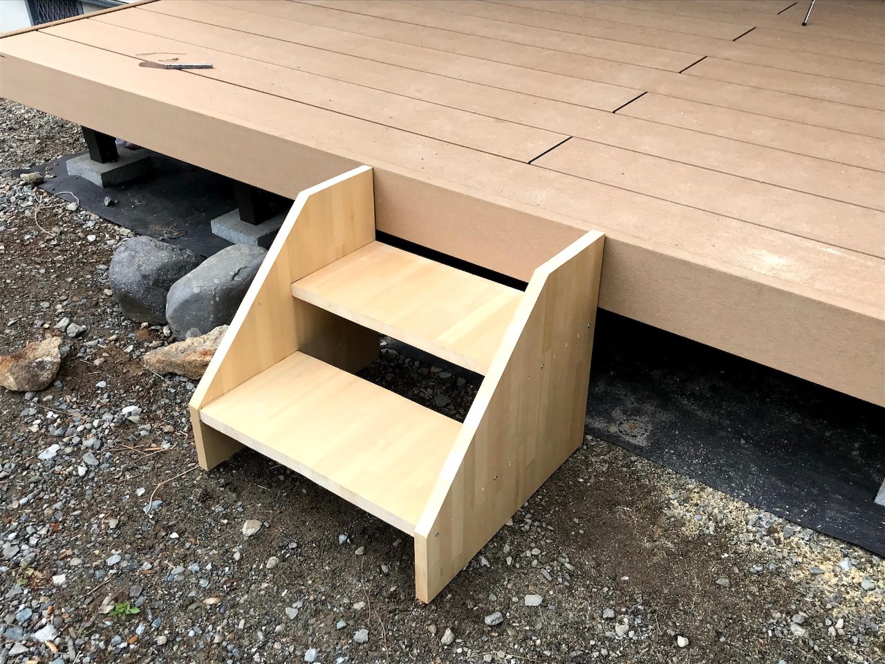余っていた材木で、ウッドデッキ用の階段も作ってみました。