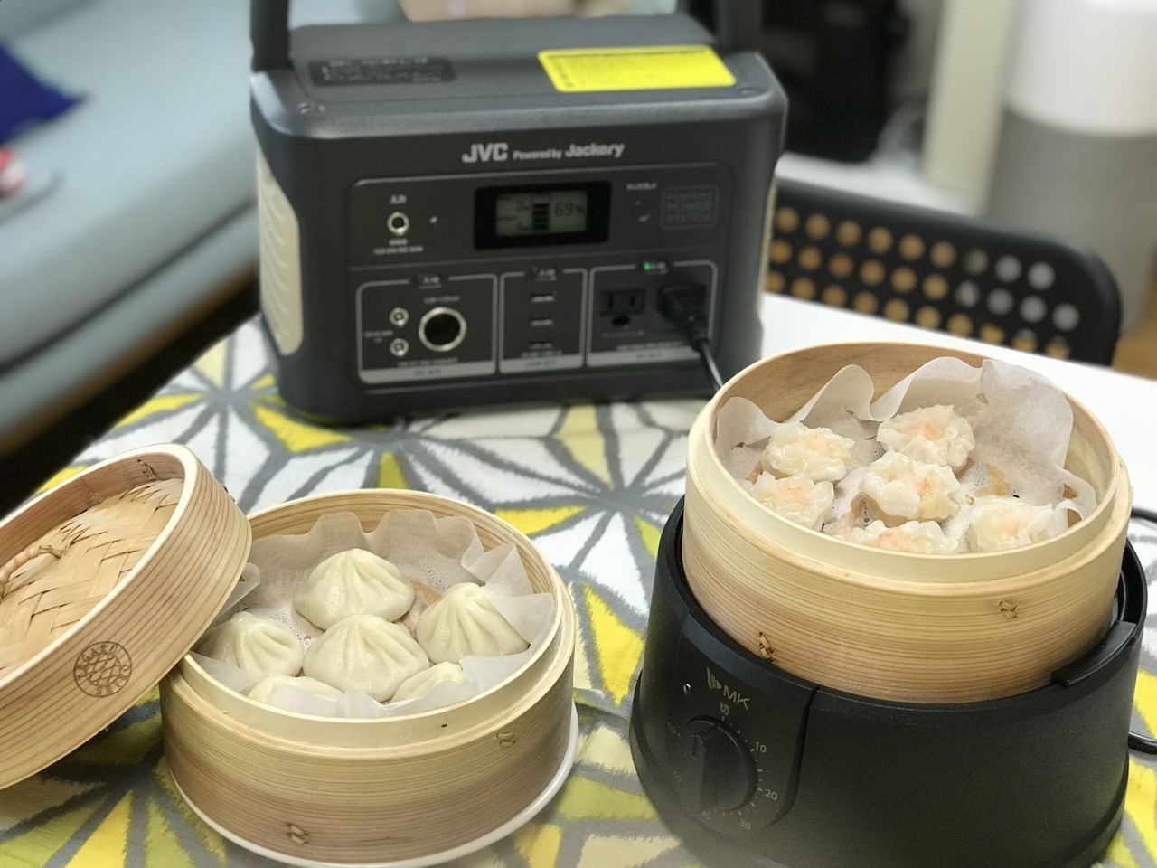 アトリエにある電気せいろは定格消費電力が480W、点心などの調理時間は15分前後なので問題なく使えます。卓上で蒸したてを食べると、冷凍食品や市販のお惣菜でもご馳走感がありますし、手作りなら格別の味わいに。ほら、思い浮かべてみるだけでも笑顔になるでしょう?