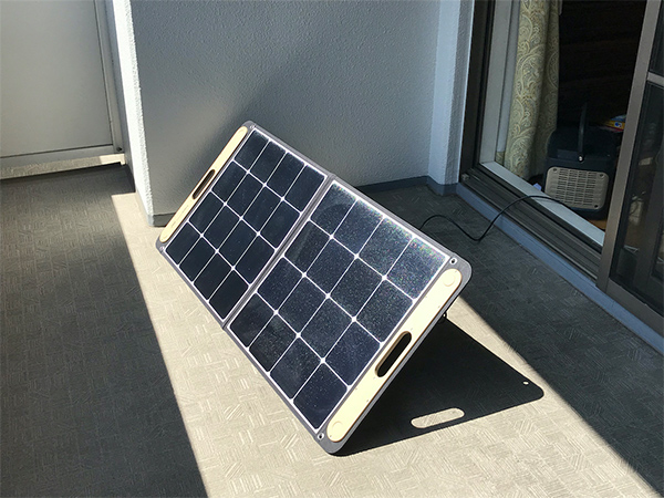 ベランダでは、陽が差すエリアがどんどん移り変わっていくので、15分に一回くらい、陽の光ができるだけポータブルソーラーパネルに当たるように、少しずつ移動して調整しました。