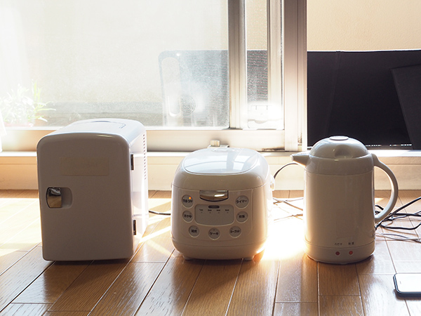 車中泊を想定すると、リビング扇風機と小型冷蔵庫に常時電力を供給しつつ、炊飯器1回、小型電気ポット2〜3回は使っても、一晩の電力はまかなえそうです。