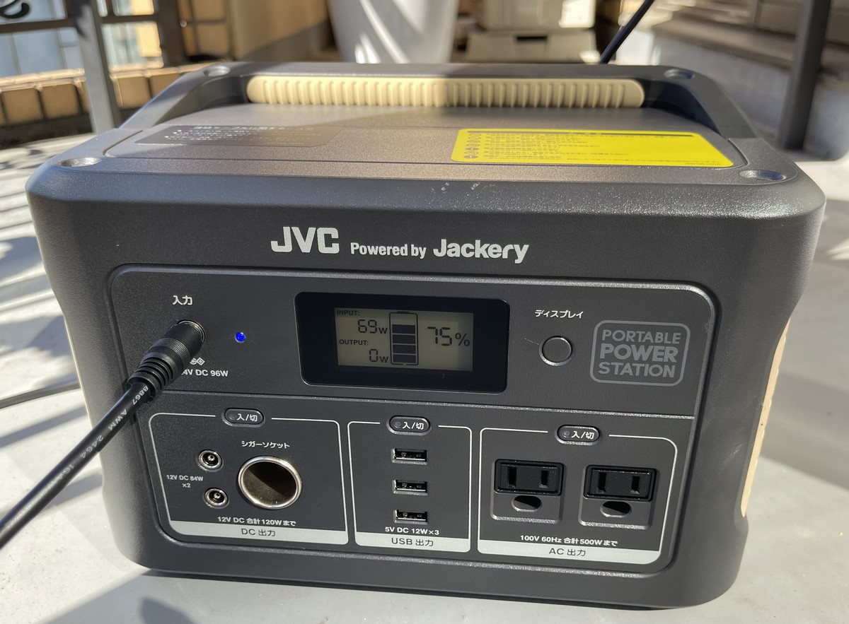 このあたりも、最初のうちは天気のいい日にがっつりと充電しなければと思って、アトリエでの在室時間が長い日に…と思っていたのですが、たとえ1時間程度でもソーラーパネルをベランダに出しておくと、電池残量が68%だったのが、76%まで増えているんですよね。そうか、このやり方でいいんだと思いました。名付けて「天気のいい日に電気のちょこっと貯金」です。