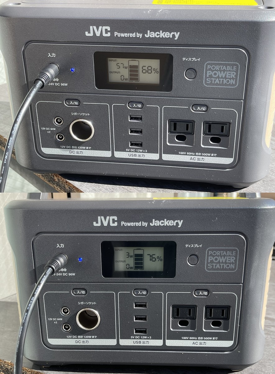 電池残量が68%だったのが76%に増えて、電気のちょこっと貯金終了。ディスプレイには今、何Wの充電ができているのかも確認できます。