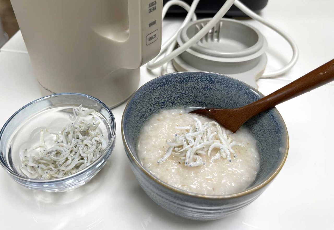 出来立てのお粥は胃にやさしくて、熱々で体に染み込むような感じがします。これさえあれば、レトルトのお粥を買い置きしなくても、簡単に失敗なく作れるので安心だなあと思います。使ったあとのお手入れもお水を少し入れて、「CLEAN」モードをオンにすると刃のまわりに付いた粘度の高いお米の残りもきれいになるのがうれしいです。