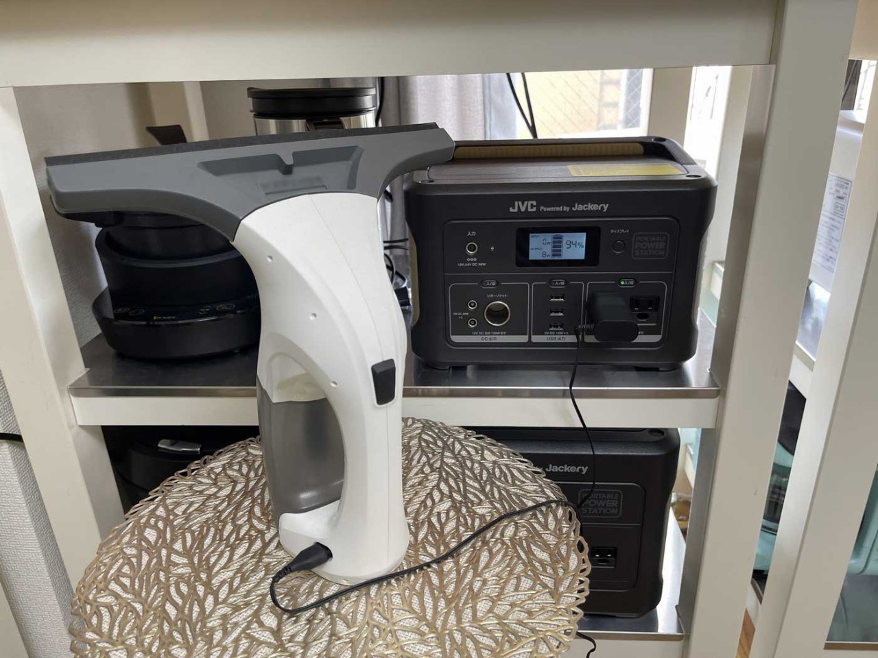 窓用バキュームクリーナーを充電中。アウトプットの数字は8Wでした