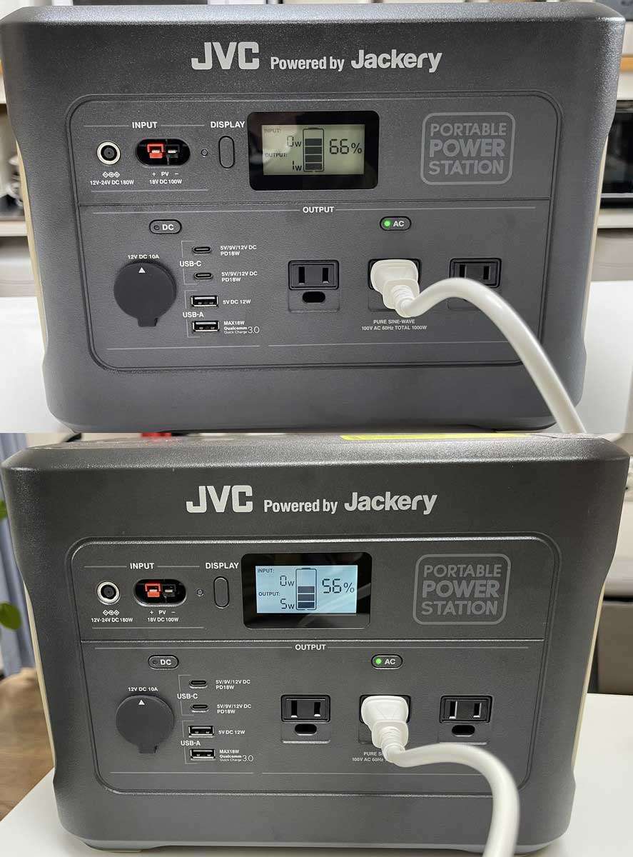 もう1つのコンセントとして使いたい場所に移動させながらアトリエで便利に使っているポータブル電源は、パワフルモデルのBN-RB10-Cと、スタンダードモデルのBN-RB62-Cの2台。それぞれの容量は1002Wh、626Whで、重さは10.9kg、6.5kgなので、手軽さならBN-RB62-Cですし、消費電力の高い家電を使いたい時にはBN-RB10-Cがやっぱり頼もしく、どちらも一長一短でしょうか。