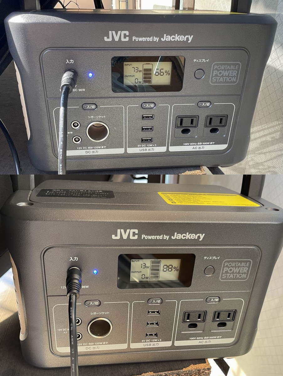 この日はスタンダードモデルの「BN-RB62-C」に繋いで“電気のちょこっと貯金”をしたら、15時~17時の2時間程度でも電池残量が66%だったのが88%になっていました!