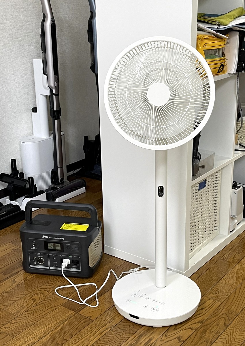 ポータブル電源があれば、コード付きの扇風機も「コードレス感覚」でどこでも使えるのが便利です