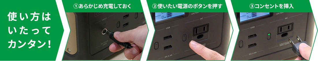 コンセントのないところでも、たっぷり電気を使えるから安心です。