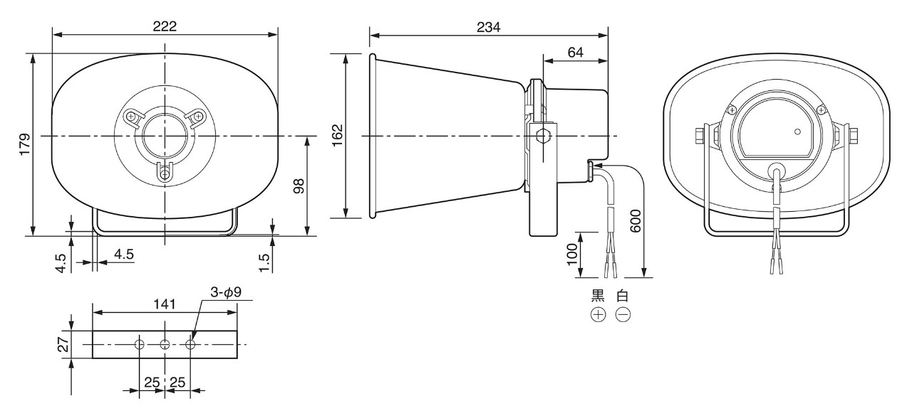 | 仕上 | ホーンマウス | オフホワイト色(マンセルN9.5近似)、アルミ、粉体焼付塗装 |