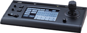 JVC製リモートコントローラー「RM-LP100」を経由してHUB(スイッチングハブ)接続により、本機1台で最大100台のカメラ制御が可能。
