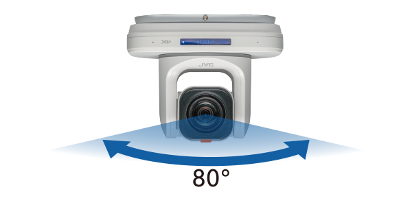 パン±162.5°、チルト-30°~+90°の広範囲をカバー。パンスピード1.8°(Min)~80.5°(Max)/秒、チルトスピード1.5°(Min)~49°(Max)/秒の旋回性を実現。滑らかなカメラワークを可能にします。