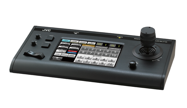 JVC製リモートコントローラー「RM-LP100」を経由してHUB(スイッチングハブ)接続により、本機1台で最大100台のカメラ制御が可能。