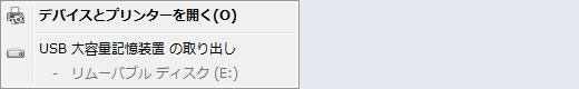 (2)クリックすると、下図のような表示が現れますので“USB大容量記憶装置の取り出し”をクリックします。