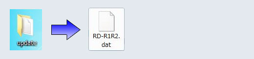 「update」フォルダを開くと、RD-R1R2.dat名のファイルがあることを確認して下さい。