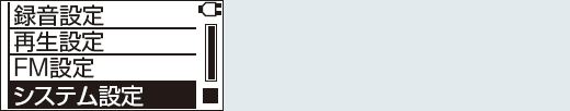 4. ▲/▼ボタンを押して「システム設定」を選び、決定ボタンを押します。