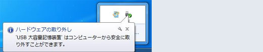 (2)クリックすると、下図のような表示が現れますので“USB大容量記憶装置の取り出し”をクリックします。