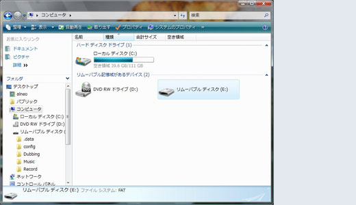本機をパソコンに接続し、パソコンのマイコンピュータを開くと、リムーバブルディスクが表示されます。