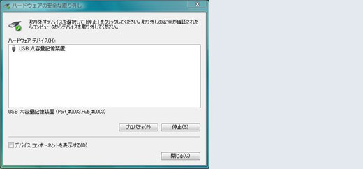 (2)USB大容量記憶装置デバイスを選択し、停止ボタンをクリックします。