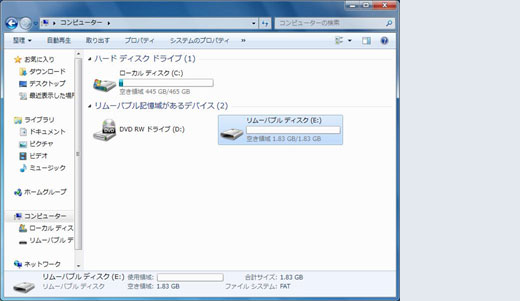 本機をパソコンに接続し、パソコンのマイコンピュータを開くと、リムーバブルディスクが表示されます。
