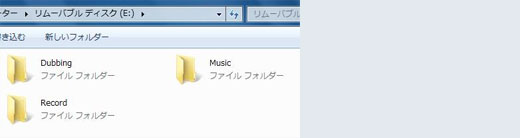 6. リムーバブルディスクを開くと、Dubbing、Music、Recordのフォルダがあります。