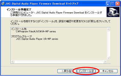 インストールは先にプログラム(パソコン側)を行い、次にそのプログラムにてアップデート(本体)しますので、セットアップ画面に従ってください。
