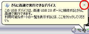 「高速ではないハブに接続している高速USBデバイス」が、表示される場合がありますが終了します。