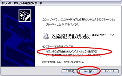 「ソフトウェアを自動的にインストールする」を選択して、「次へ」をクリックします。