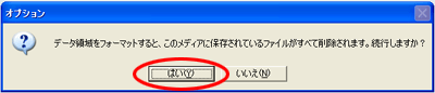 次に、「データ領域のフォーマット」にチェックを入れ「スタート」ボタンを押します。