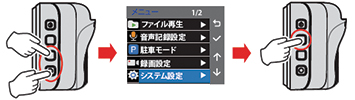 下記の手順に従って、お使いのドライブレコーダーのファームウェアバージョンが、アップデート対象バージョンかどうかを確認してください。