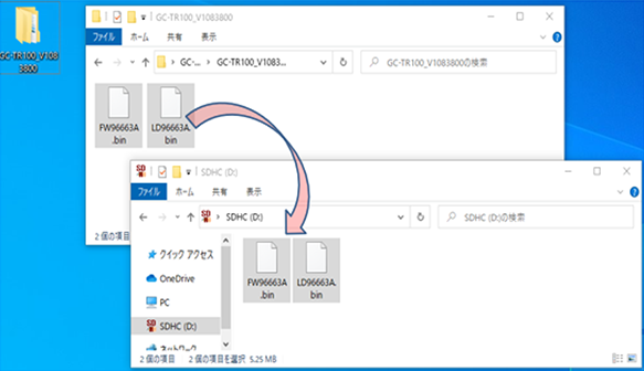 SDカードのルートディレクトリに「LD96663A.bin」と「FW96663A.bin」の2つのだけの状態にしてください。