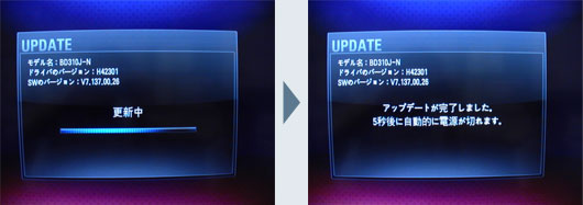 7. 更新中の表示が出て、データー書き換えを行っています。アップデートが正常に終了すると、自動で電源が切れます。