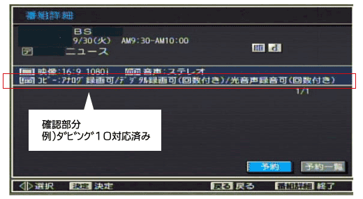 ※お客様ご使用の製品がダビング10「対応済み」か「非対応」かの確認方法は以下のとおりです。