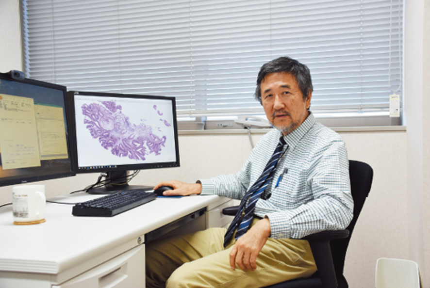 Professor Mori has been devoting himself to digitizing pathology diagnosis as the president of the Japanese Society of Digital Pathology, which aims to research, apply, and generalize digital pathology in Japan.